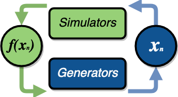 A user wants to optimize a simulation calculation. The simulation may already be using parallel resources but not a large fraction of a computer. libEnsemble can coordinate concurrent evaluations of the simulator at multiple parameter values based on candidate parameter values produced by the generator (possibly after each simulator output).